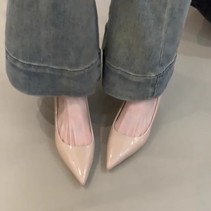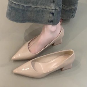 羊皮版 ~ 本革のフランスの気質は太くて、裸の浅い口の通勤する靴の女性の2025春秋の新型のハイヒール
