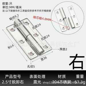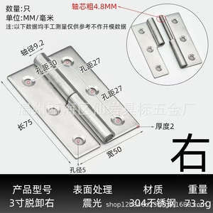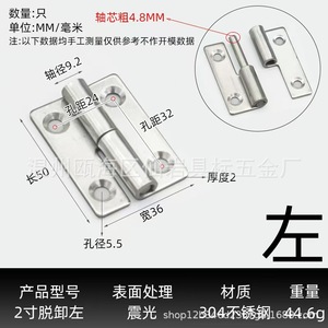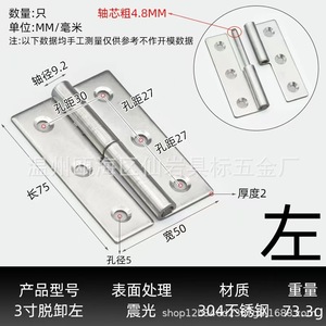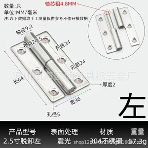 304ステンレス脱着ページ小平開4インチ3インチ2.5インチ2インチ1.5インチ工業キャビネットドア窓ヒンジが厚くなった