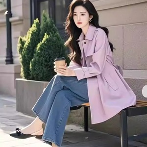 2025新款今年流行爆款超火小香风独特超好看紫色风衣外套女早春