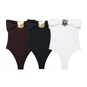 外贸单!欧美夏季新款女装无袖修身抹胸金属饰一字领黑色泳衣
