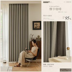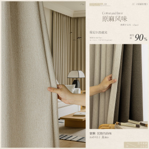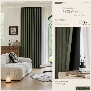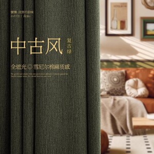 中古风复古绿棉麻雪尼尔遮光窗帘轻奢客厅卧室2025新款柯桥高飘窗