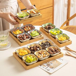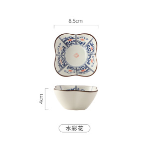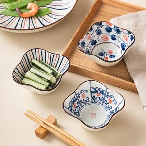 陶磁器の花の形の皿の日本式の復古の釉薬の下で彩の花型の碗の家庭用レストランのソースの碗の鍋の皿の軽食の皿