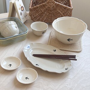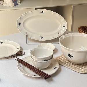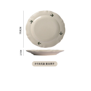 フランスのレトロなツバメの食事の皿の家庭用陶磁器の料理の皿の魚の皿の手描きの釉薬の下で色の甘いものの皿は材料の皿をつけて魚を蒸します。