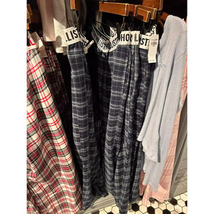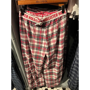 日本のレトロな格子の寝ズボンの女性の夏の純綿の広腿のズボンの薄いタイプの散歩の曲がった神のズボンの家庭の長いズボンは外に着ることができます。