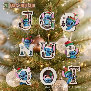 2D平面装饰性悬挂装饰品26个字母和史迪仔木制节日装饰窗户和派对