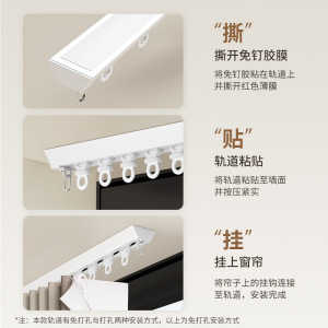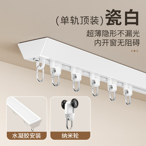 超薄型カーテンレール、パンチフリーフック式プーリー、サイレントサイドマウントトップスライドレール、ダブルレールスネークカーテンスライドレール
