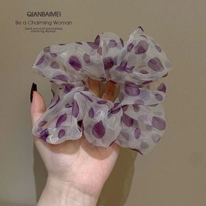 夏の紫色の水玉模様〜控えめでレトロでファッショナブルな肥厚腸リング気質ヘッドフラワー肥厚腸ゴムバンド高級シルク糸