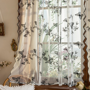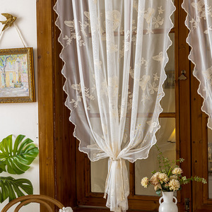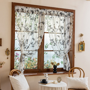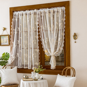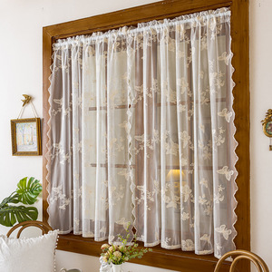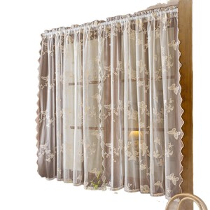 フレンチクリームレースガーゼカーテン、パンチフリーショートカーテン、刺繍ハーフカーテン、出窓、床から天井までの窓、小さな窓、間仕切りドアカーテン