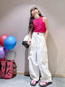 女童工装休闲裤夏装2025新款儿童炸街裤子中大童潮酷穿搭阔腿长裤