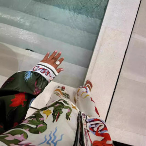 欧米2024新独立駅速売通ファッション個性プリントマカロンリネン長袖シャツセット