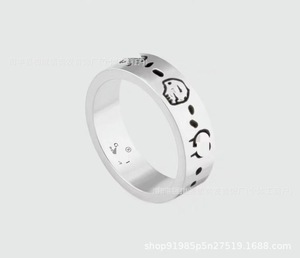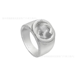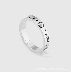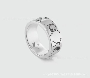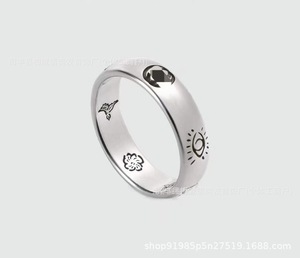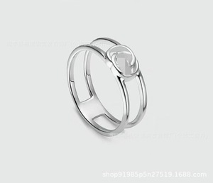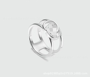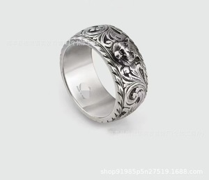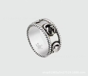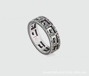 古家925シルバーダブルGストライプ花鸟爱恐れなし男女カップルペアリングシンプルファッション指轮バレンタインギフト