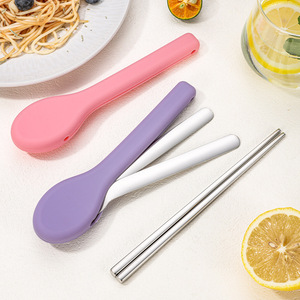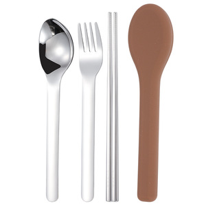 304屋外旅行ステンレス食器スプーンフォークセットスプーン携帯スプーン箸2点セットシリカゲル高颜値