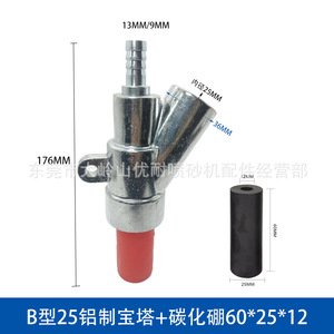 B型耐摩耗アルミサンドブラストパイプ外径25ガンヘッドストレートプラグサンドブラストガンサンド除去用サンドブラストノズル大