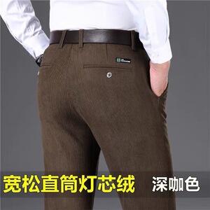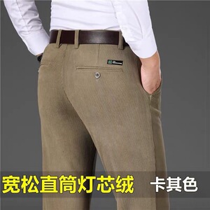 秋冬款灯芯绒男士休闲裤宽松直筒男裤中年爸爸商务百搭条绒长裤子