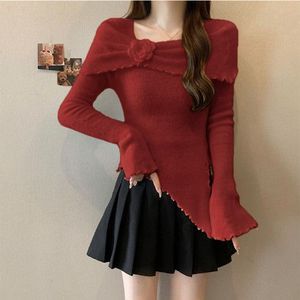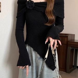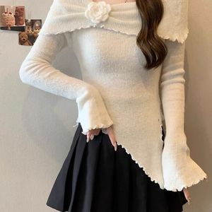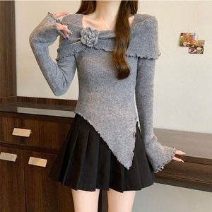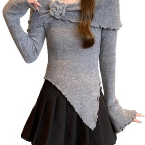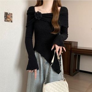 フレンチスタイルの耳元立体セーター、花柄セーター、秋の新作スリムフィットイレギュラートップス