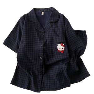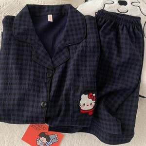 高見えチェック柄KT人気クラウドコットン薄手夏ゆったりパジャマレディース半袖ショーツホームウェアセット