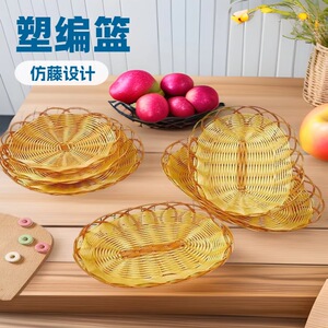 プラスチック製の籐バスケットポップコーンフライドポテトKTVスナックフルーツプレートパン食品手織りバスケット鍋スナックバスケット