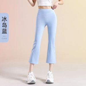 秋の新作、ハイウエストで細見え、ヒップアップ効果のある、微フレアのスモールパンツ。外でも着られる、バービーヨガパンツのような8分丈のレギンス。