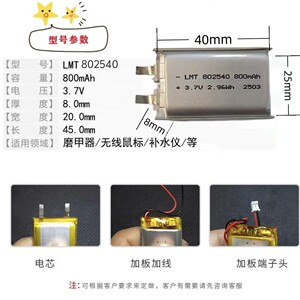 802540 800mAh LMT 認定ポリマーリチウム電池美容機器マッサージ機器バッテリー