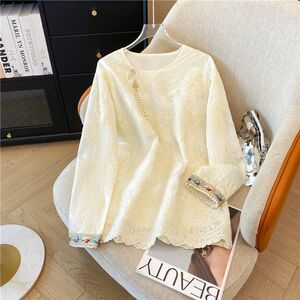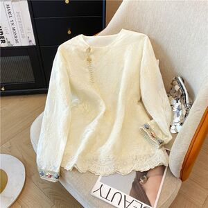 新しい中国風の重工業刺繍中国風レースシャツ女性の春の服ライト高級ハイエンド長袖トップス西洋スタイルの小さなシャツ