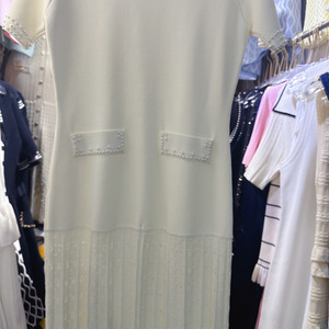13ラインフレンチエレガントヘビーパールミドル丈半袖ニット中空ロングスカートドレスC1 # 1665
