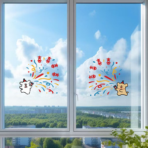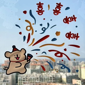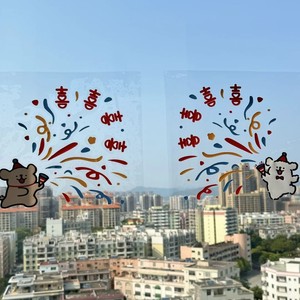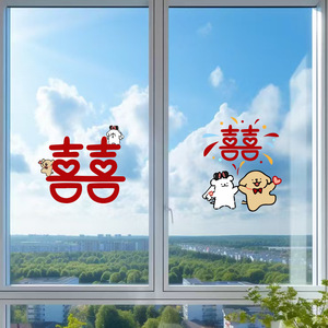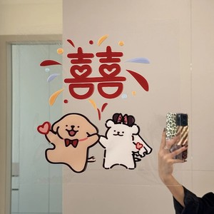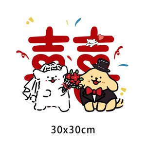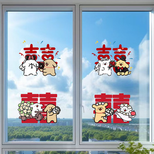 結婚式の特別なライン子犬ハッピー文字静電ステッカー結婚式新居ガラス窓窓花ドアステッカー結婚式の部屋の装飾