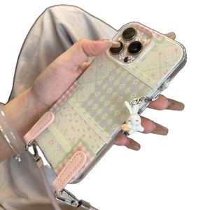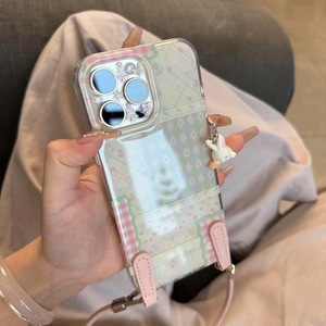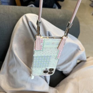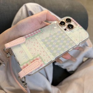 春のニッチチェック柄小花柄 Apple 15promax 携帯電話ケース 16 落下防止 iPhone13/14 女性に適しています