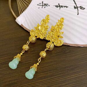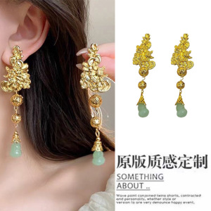 楊冪同モデルの金色のレリーフ祥雲新中国式国風イヤリングは豪華で高級感があります。