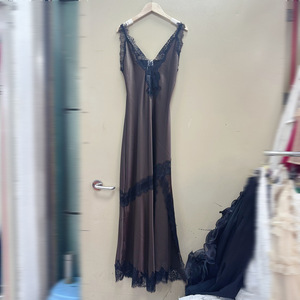 ヨーロッパのファッション気質の重いサスペンダーブラックレーススプライシングスリットドレスロングスカートC1の13ライン # 1667