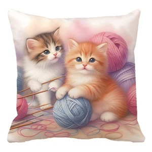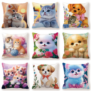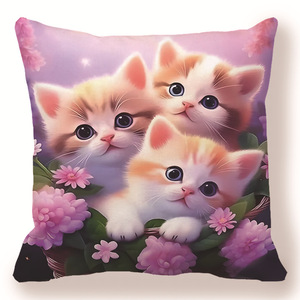 かわいい猫枕漫画子猫リビングルームソファ枕寮寝室クッション枕カバーピーチスキンプリント