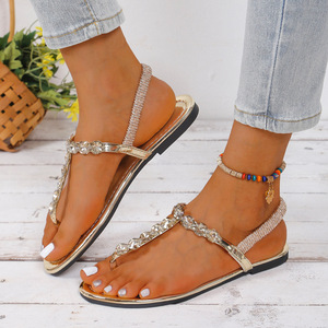 ボヘミアンラインストーンフラットローマンシューズサマービーチシューズダイヤモンドがちりばめられた女性の靴夏のアウターウェアスイートサンダル