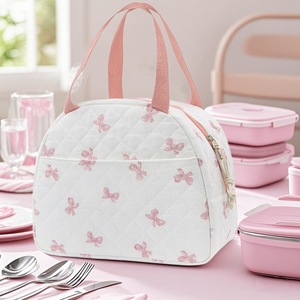 新型クロスボーダー花蝶結びさくらんぼ模様キルティング弁当箱袋ランチバッグ大容量アルミフィルム保温バッグ綿