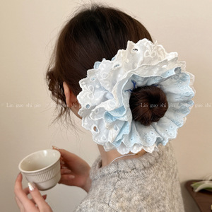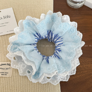 4層中空バレエ風ブルーレースヘアゴム、ヘビーポニーテール、大判フラワー、高級ヘアロープ、ゴムバンド