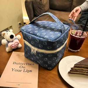 ハローキティデニム生地ポーチ大容量収纳可爱い旅行洗面所デリケートな2层ケースバッグ