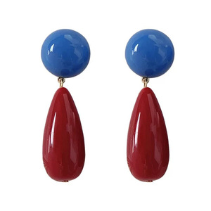 レトロな香港スタイルの赤と青のコントラストのあるウォータードロップイヤリング、女性用、ファッショナブルな誇張イヤリング、樹脂ラウンド幾何学デザインイヤリング