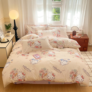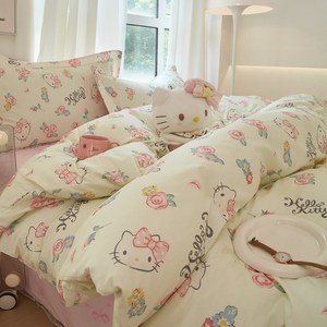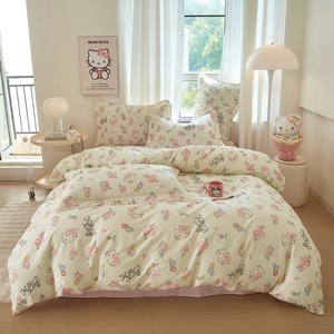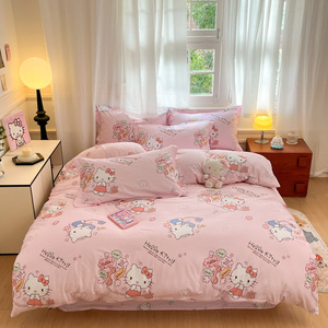 ハローキティ漫画プリントコットン4点セットサンリオかわいい子供用コットンベッド3点セット卸売