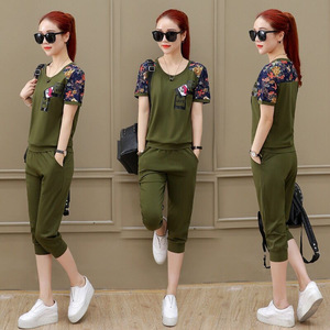 2025 スポーツスーツ女性の新しい韓国スタイルルーズ大きいサイズファッション半袖クロップドパンツカジュアルランニングウェア春と夏