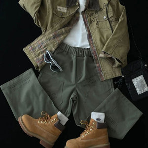 男童外套儿童夹克衫翻领春装2025新款女童上衣军绿色时髦韩范痞帅