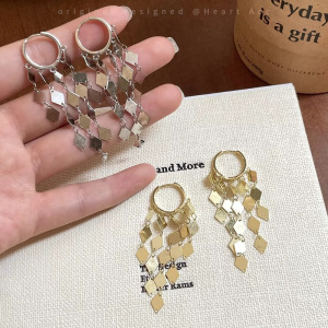 高級感幾何学滝流蘇イヤリング冷淡風小衆軽豪華耳ボタン気質霊動小衆精致耳飾り