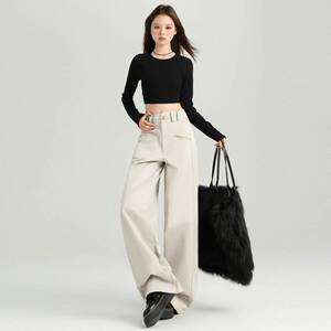 批发秋冬季韩版高腰设计宽松休闲裤女