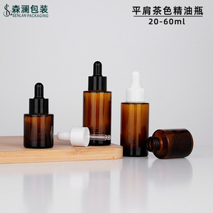スポットブラウンフラットショルダーエッセンシャルオイルボトル 20ml 30ml 40ml50ml 60ml ブラウンドロッパーエッセンシャルオイルボトル