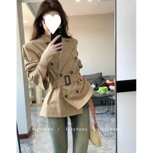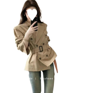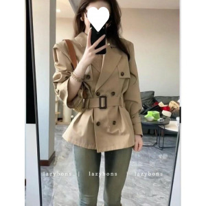 高級トレンチコートの秋の新型の気質のカーキ色の双列英倫の小さい背の短い金は腰のコートの女性の潮を収めます。
