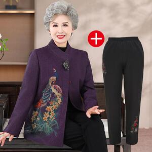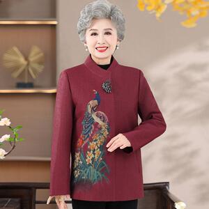 中老年人秋冬装外套女喜庆奶奶春秋款唐装上衣70岁80妈妈婚宴衣服
