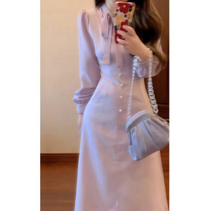 法式复古小香风蝴蝶结系带设计长袖衬衣女秋季款背心连衣裙两件套