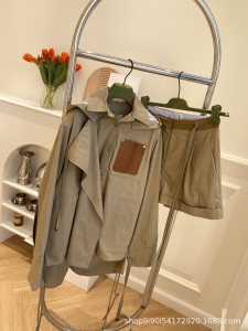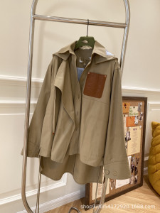 23初秋の新しいニッチデザインレザーラベルレターロゴ装飾フード付きルーズファッショナブルな気質ウインドブレーカージャケット