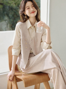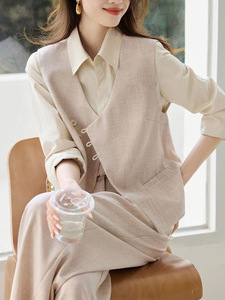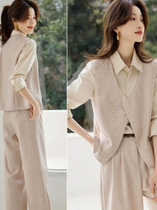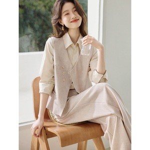 高級感優雅気質改良新中国式馬甲広脚ズボンセット2025春の新型通勤2セット