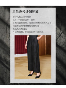 黑色龟纹香云纱老料重磅100%桑蚕丝松紧腰宽松显瘦气质女士阔腿裤