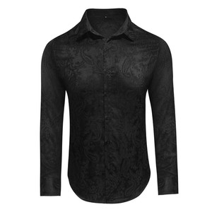 2025 クロスボーダー Amazon メンズ シルク サテン シャツ 長袖 ジャカード ペイズリー パーティー プロム ウェディング シャツ