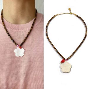 タイガーストーンフラワーペンダントネックレス38+5CM