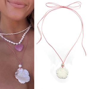 2025新型の白い貝殻の花のネックレスの気質は鎖の鎖をつなぎ合わせます。